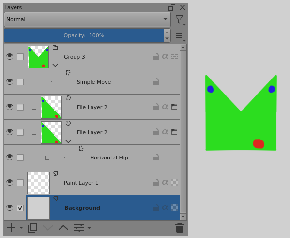 Also thanks for your detailed answer about the clone operation and comments on the flatten operation, I’m not familiar with Krita’s terminology yet (that is why I included the shortcuts) so your answer was very instructive.