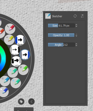 For instance, I can hold down shift and drag to change the size of the brush tip. I can press ‘I’ or ‘O’ to in/decrease the opacity in increments. Is there a way to do this with the angle of the brushtip?