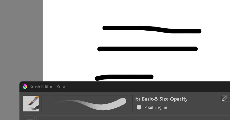 Some painting apps use post processing or vector strokes to do this. Krita doesn’t. When we want a tapered line, we create it by using varying pressure on the stylus.