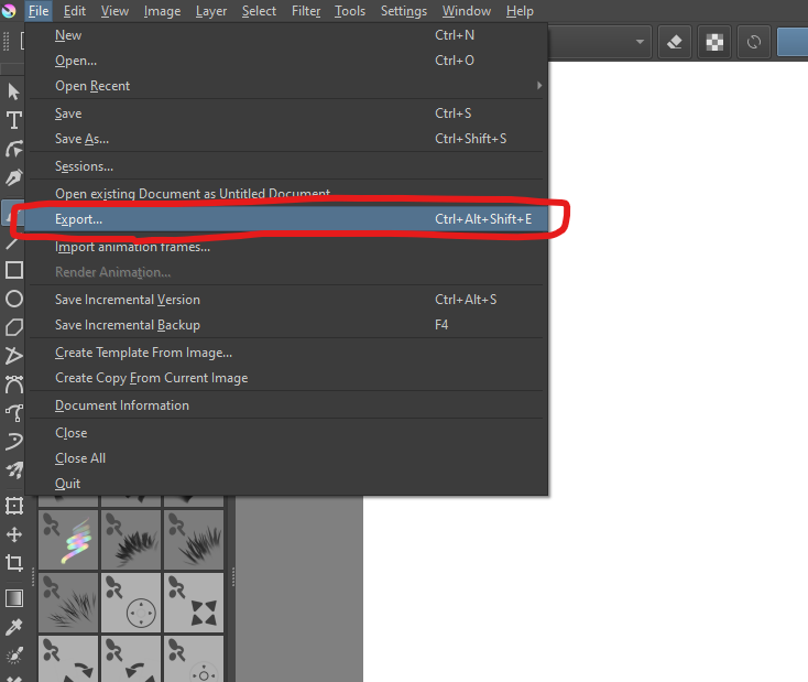 Select “Export” from “File”