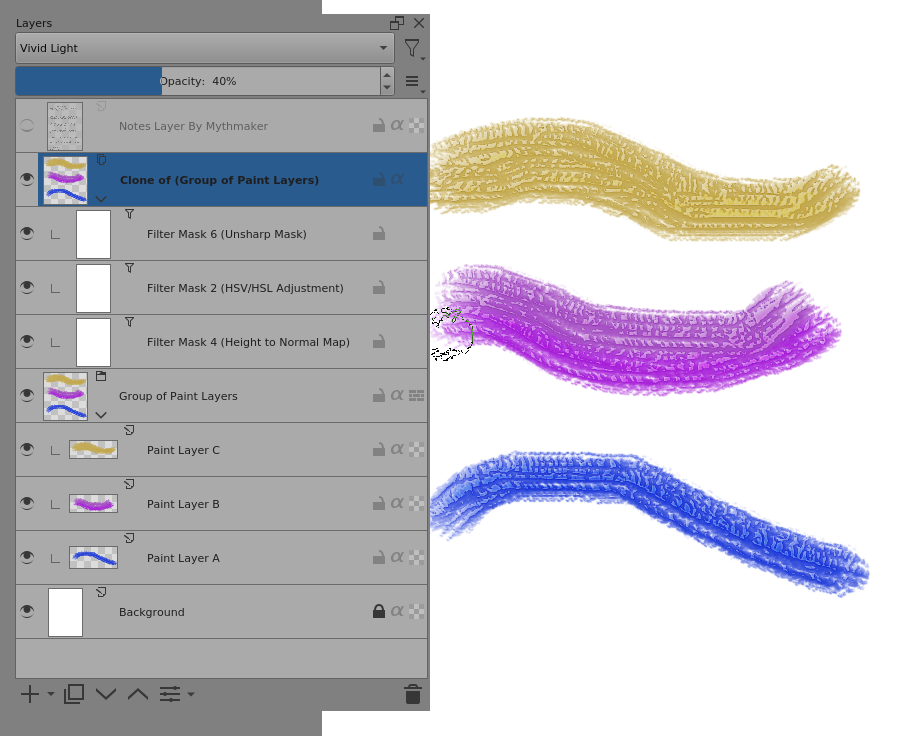 Notice that the Clone layer has a layer blending mode of Vivid Light and an Opacity of 40%. This is explained in the Notes layer that was originally made by Mthymaker.
