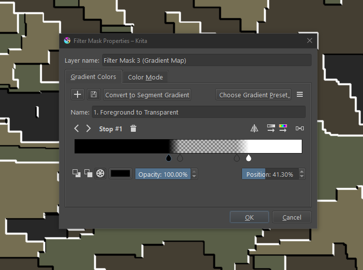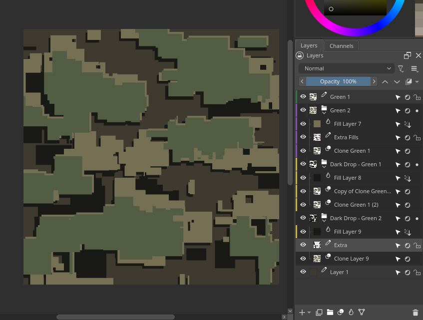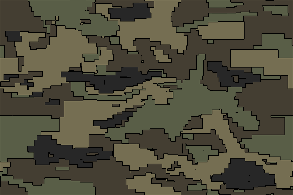 I made the “camouflage” on two layers, brown background on the bottom layer, green, beige and dark camouflage spots on the top layer.