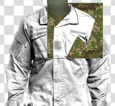 Dumb question here… As you can see I’m using a premade uniform template I’m trying to mock up some camouflage on. What’s the best way to get the camo image to appear on the camo uniform? I am new to this so I don’t know the correct terms to use.