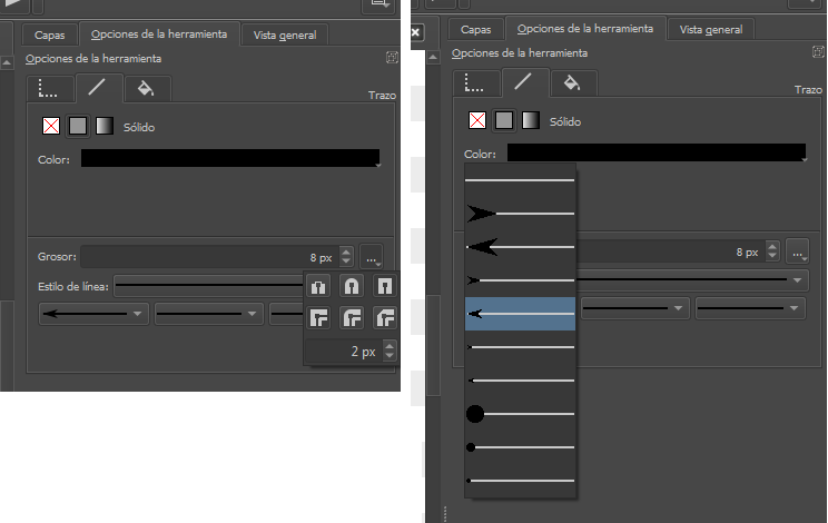 Excellent information, I’m making progress with the lineart part. Now, what I can’t find is the option to make the tips of the lines (in vectors) end in a sharp brush-like shape. I only see the option for them to be square or round. Additionally, there are some options that add a kind of shape at the tip (and honestly, I don’t know what use they have because, from what I’ve tried, they can’t be modified in any way, they just stay there). Other thing is, if two lines intersect, is it possible to erase the extra part of the line? Or is there only the option to adjust it manually so it doesn’t protrude.