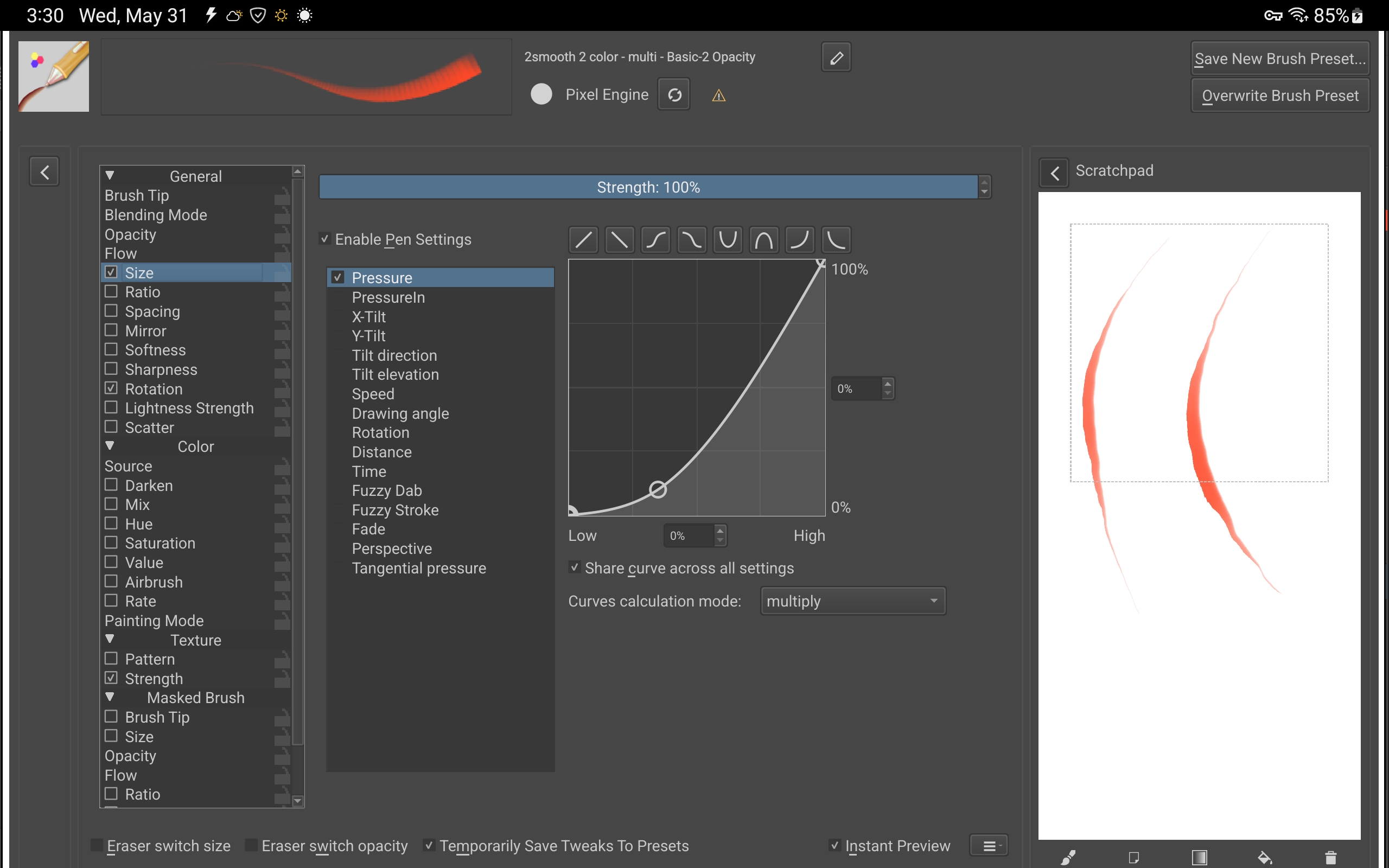 It doesn’t matter how much I play with the sensors and pressure options, I can’t get my strokes to end in a smooth tip, like I can in Paint Tool Sai. Is there something I’m missing?