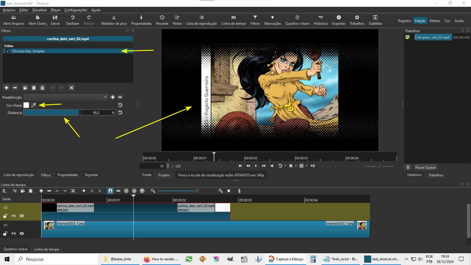 Then I opened the mp4 in Shotcut and applied the “Simple Chroma Key” filter. By default it’s set to green, but you can choose the color to be eliminated using the eyedropper. In this case I chose white and increased the filter’s range percentage to 95%:
