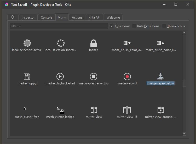 Also, the Krita Scripting School has an icon library reference that is handy.