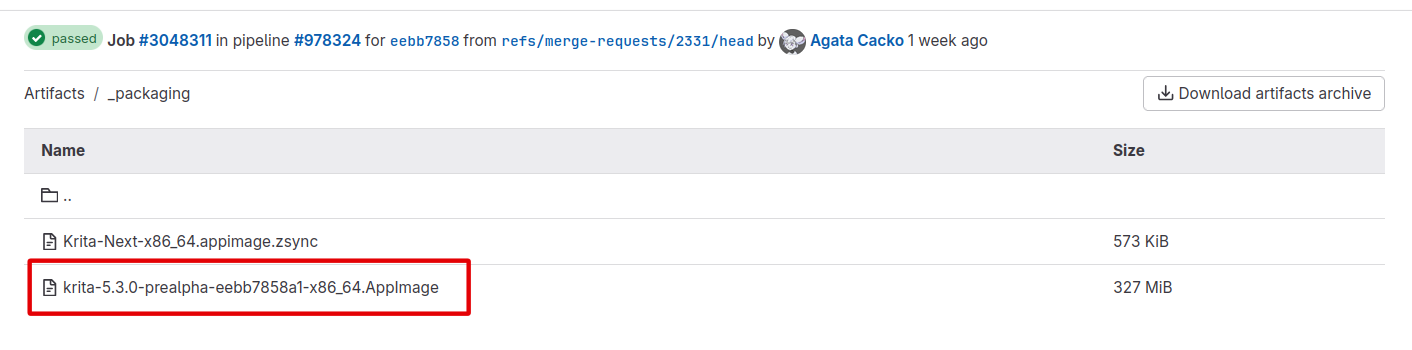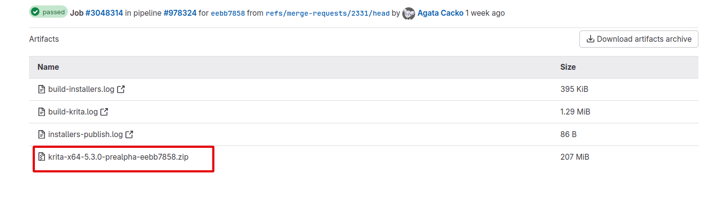 There might be some features that are in development that you might want to test. Now that we have this amazing system with CI pipelines that create a proper Krita build for Windows and Linux for every Merge Request, you can easily test a feature without building Krita yourself, even if that feature isn’t finished yet.