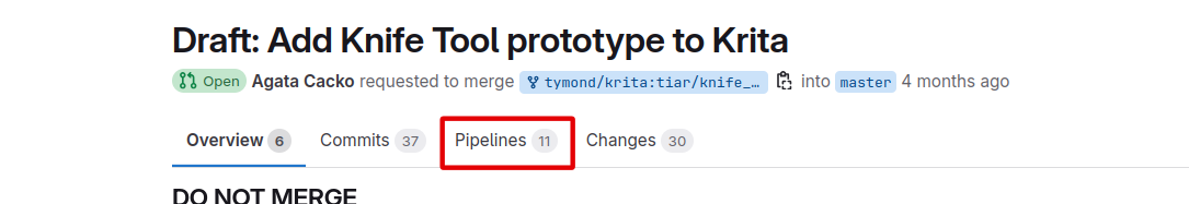 Find the Merge Request you’re interested in on the list: Merge requests · Graphics / Krita · GitLab and click on it (or get the link from Feature Requests category etc.).