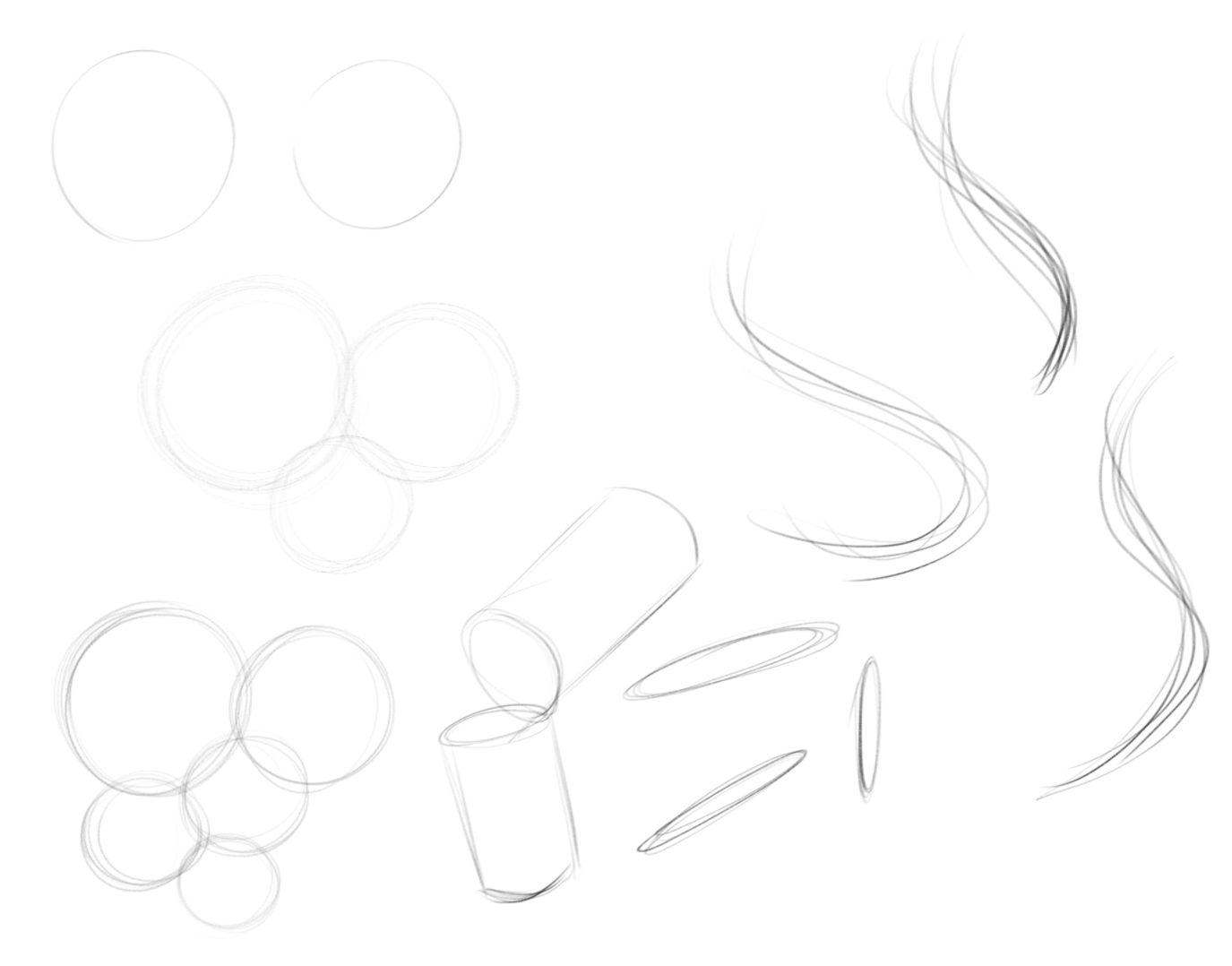 Simple shapes and forms are good training sessions and when you’re just starting out, it’s better to practice simple shapes and forms traditionally. That way you have more and better control without the technical obstacle being in the way. Right now you’re wrestling with software/hardware, and you might think that to be a better artist is to master the hardware/software but that is not the case. Once you have a better control of your hand and arm, it’s then easier to switch to doing it digitally. This doesn’t mean that you can’t start off your art journey doing everything digitally straight from the start. Anything is possible! But do keep in mind the challenges that come with doing everything digitally right away.