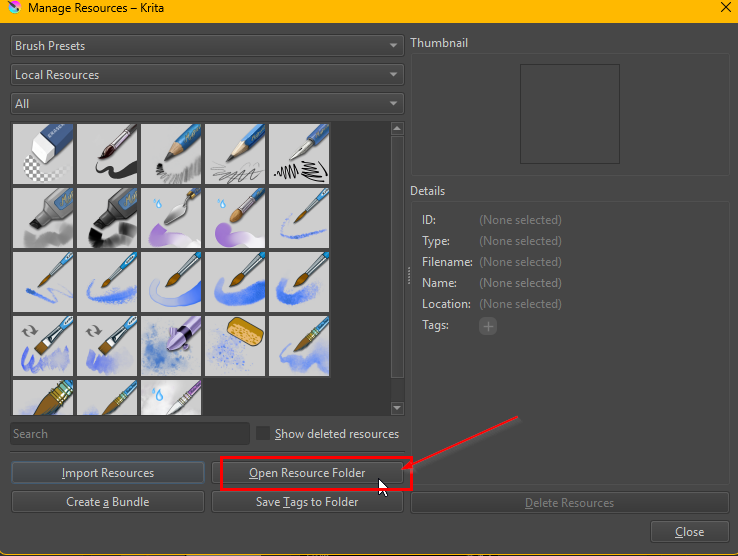 Then in Krita/preferences/general/ressources, I placed the link to the templates in Finder in my iMac.I hoped that if I started Krita again, I would see the templates, but that was not the case.