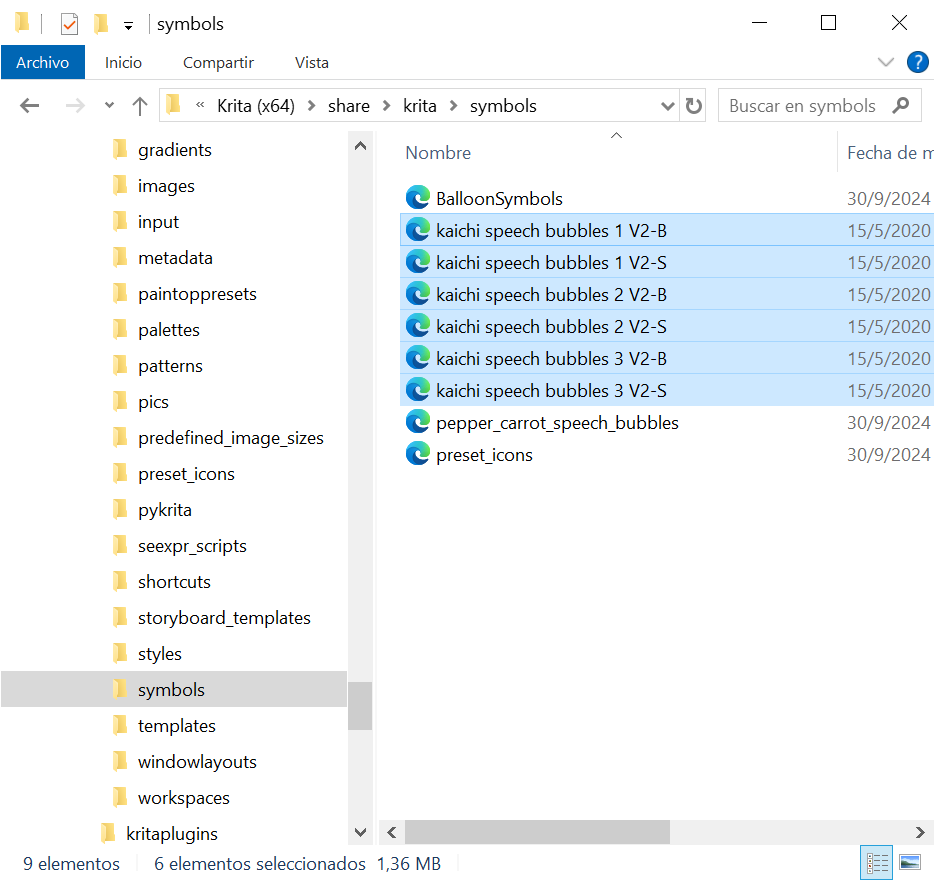 I opened the resources folder via “Configure Krita” > “General” > “Resources” and copied the folder with the .svg files