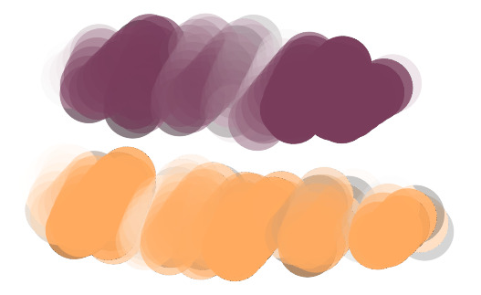However, another problem is that when smudge is between 0 and 1, the color mixing is abnormal, and both 0 and 1 show complete spectral color mixing. I guess libmypaint sets that rgb mixing will be used to mix the sampling color and foreground color when smudge is between 0 and 1