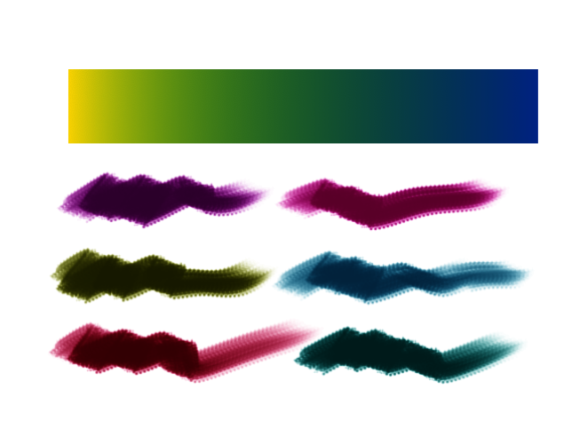 There should be some problem with the data, I used the averaging method to try and get a lower number of channels, but a similar result occurs, with an unusual effect when the upper colours are less transparent, so we should need to calculate the new spectral data, but I don’t know how to do it
