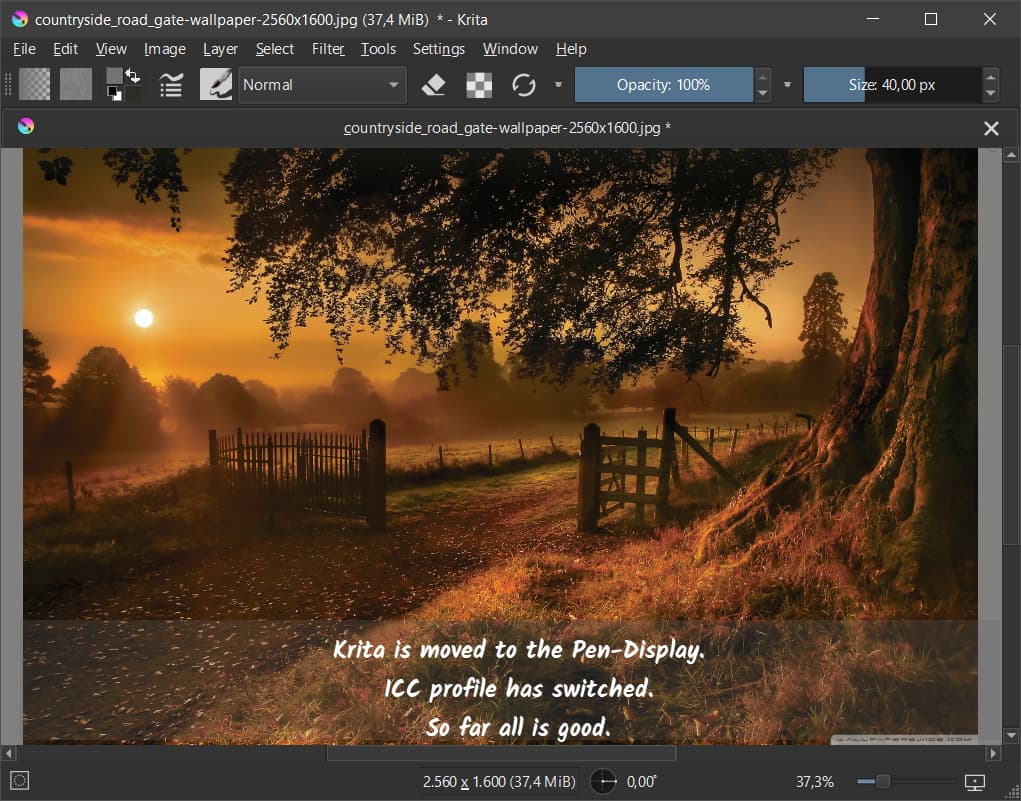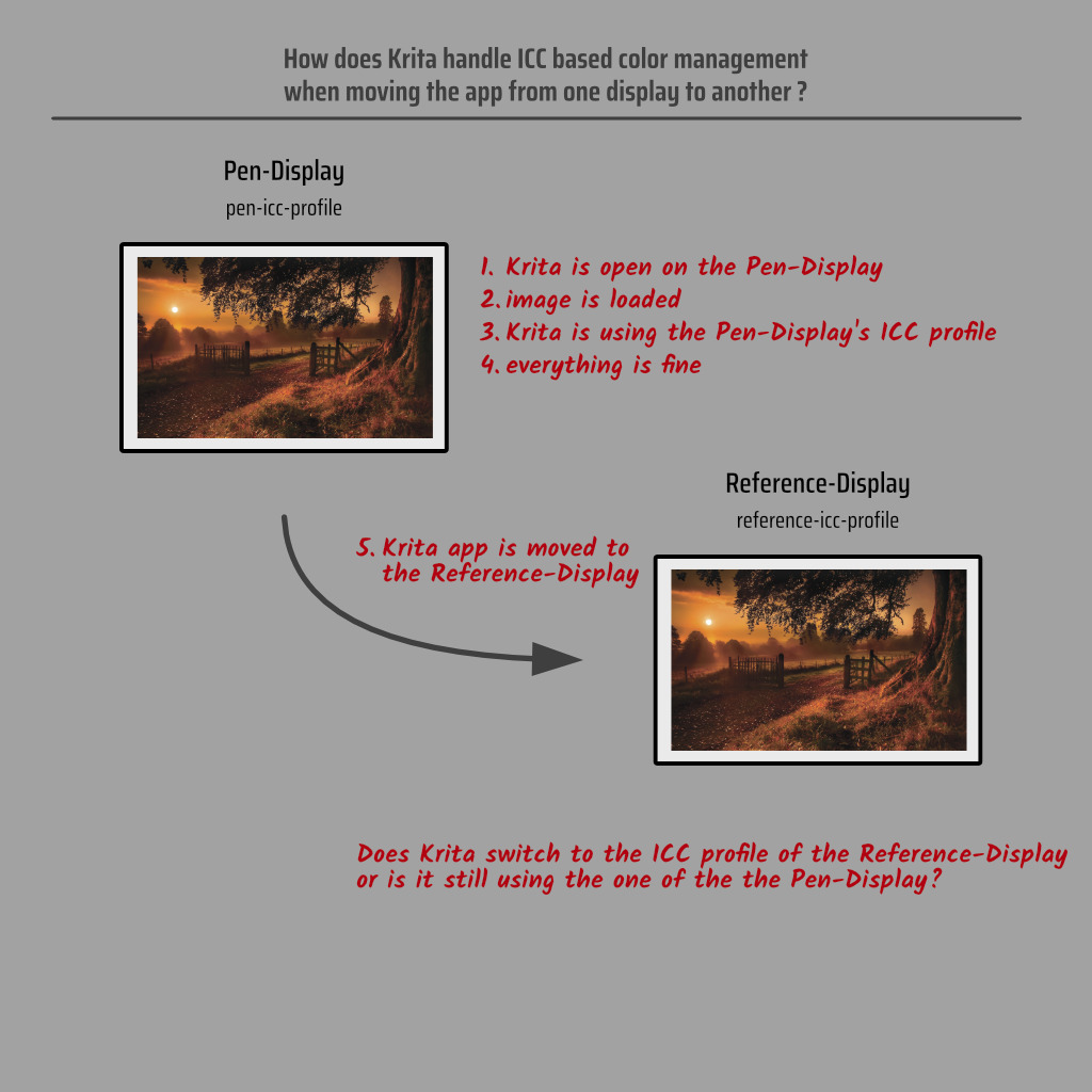 I now move Krita to the Pen-Display. Krita switches to the Pen-Displayâs icc profile as expected. So until now everything is good.