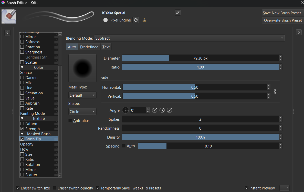 There is this brush that can act like a solid paint on heavier stroke and smudger on lighter stroke. I experimented but the one I made gets this blow out at the end of the stroke… you know like a pen that suddenly went splat. I also could not get close to those “outline”, yet wet circle c does them pretty nicely.