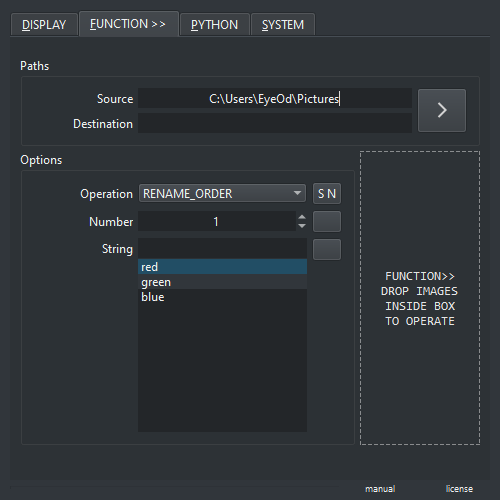 Function tab now has a “Drop Area” in which dragging and dropping images inside will trigger the active operation.