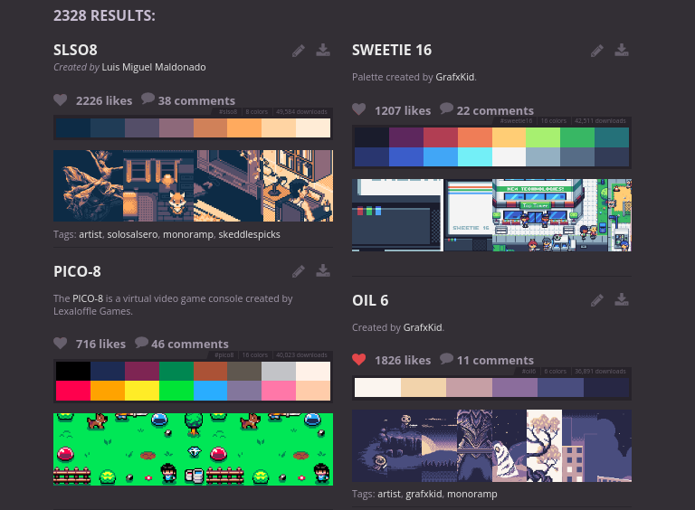 They have a lot of options, but if a mass install was chosen, maybe also give the option to select a max limit for the number of colors included or a general color profile in each install, so the program isn’t overloaded with choices? I’m not sure if there’s any other sites like this one that host these for download like Lospec does but I’m sure it’d be helpful for any artist who just wanted some color inspo.