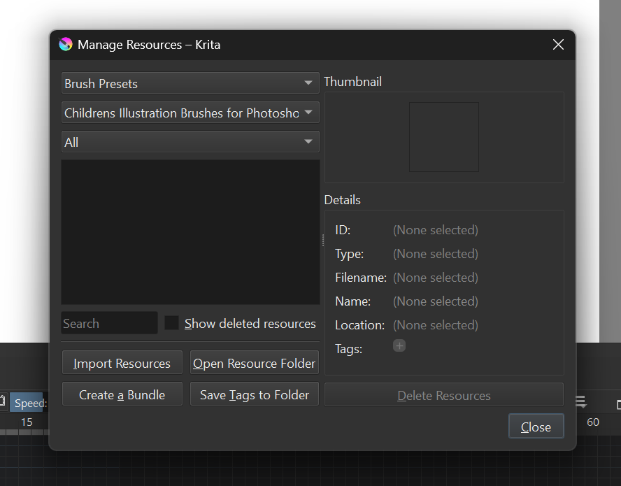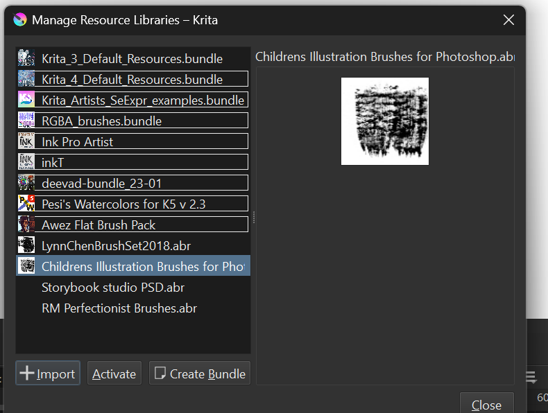 And I have therefore introduced the following workflow for myself to avoid constantly importing ABRs that Krita cannot read, then having to remove them again, and to avoid all the unnecessary fuss.