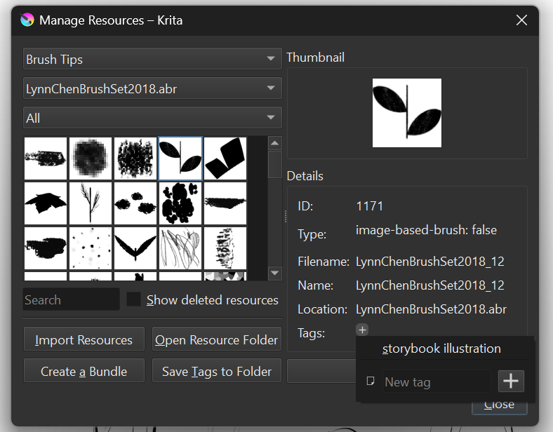 i have a few questions. i imported some .abr brush sets into krita. i know that when you import photoshop brushes into krita, you can only use the brush tips and recreate the brushes. however, the brush tips i imported didn’t show up in the brush engine tab, and i can’t tag them. any ideas?