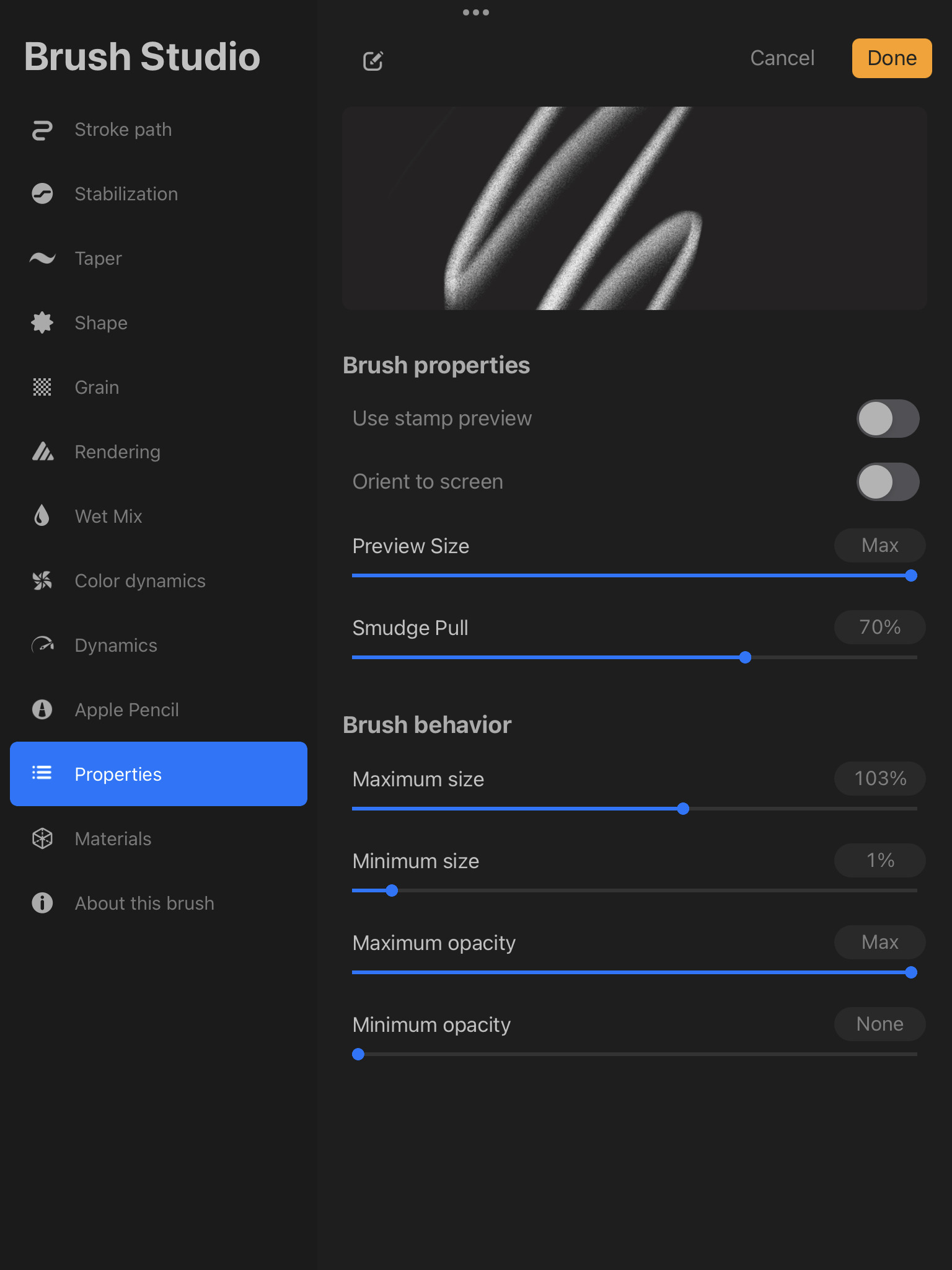 i got two favorite brushes from 씰Seal on youtube and cosmic cookie (magdalina dianova) on instagram that i’ve been trying to recreate. they’re amazing, but i can’t quite get them right. the pictures below show their brushes and an overview of procreate’s brush engine.