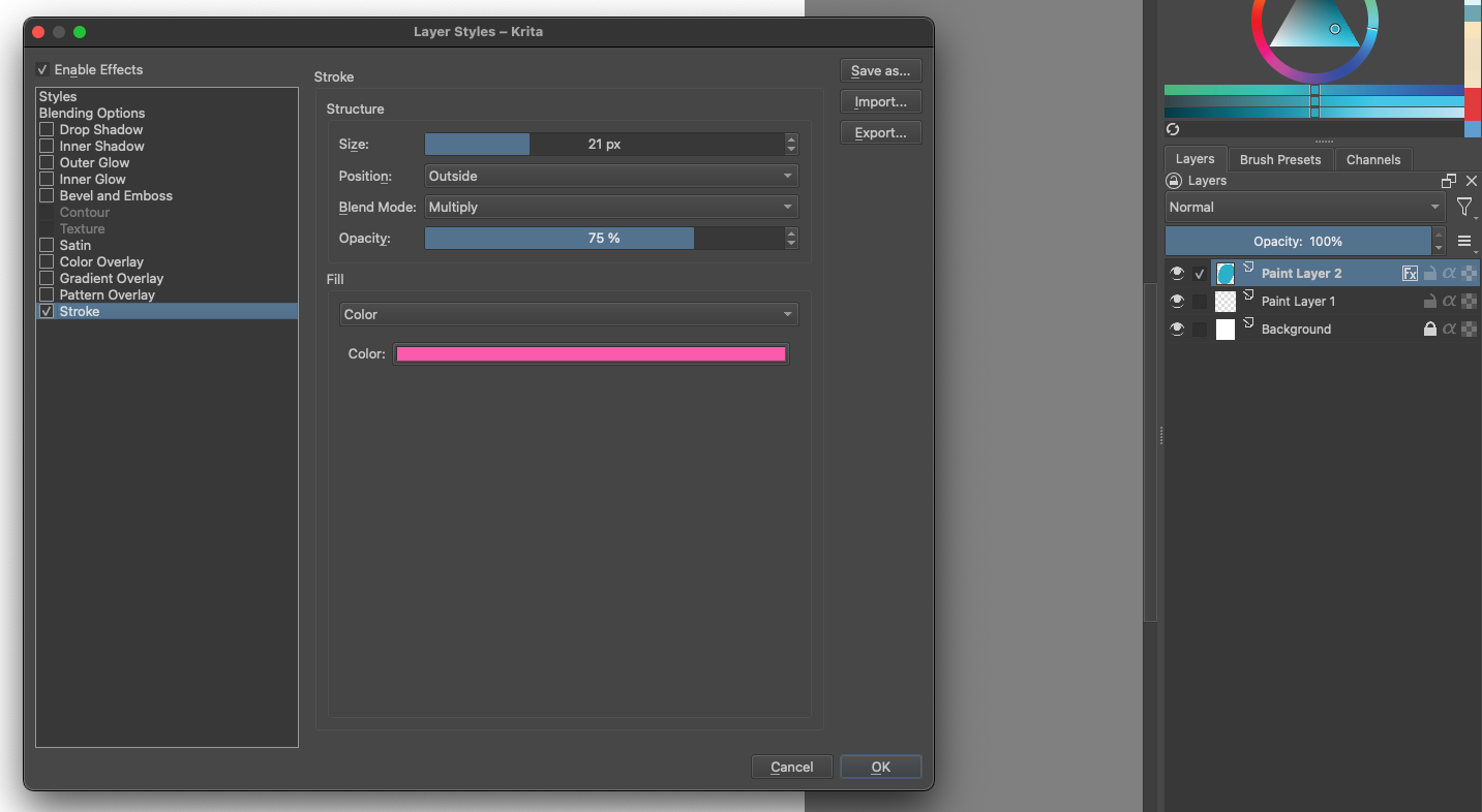 To change the hex code of a stroke layer style, it’s currently like this: