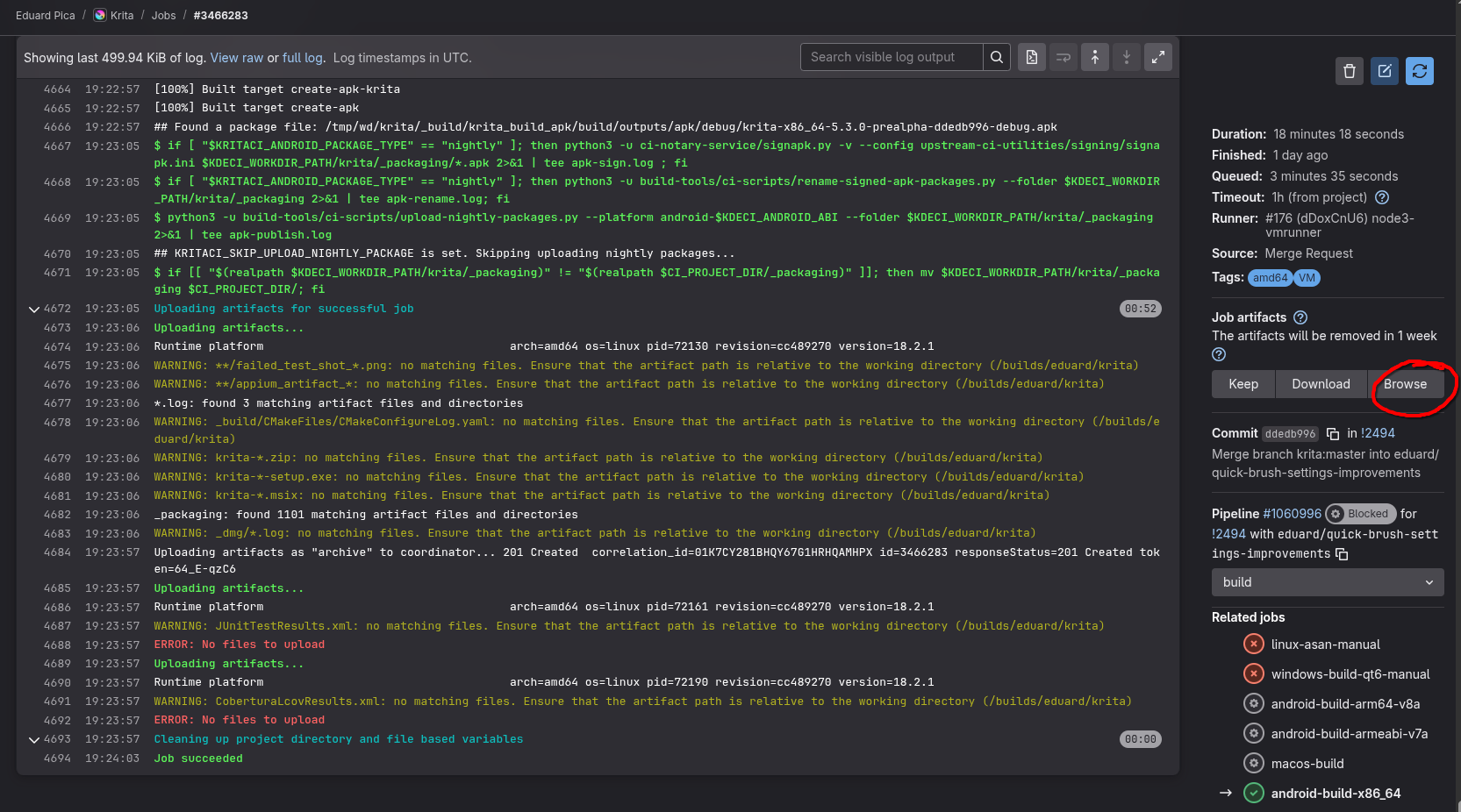 Step 4: Then click on the browse button of the “Job Artifacts” section