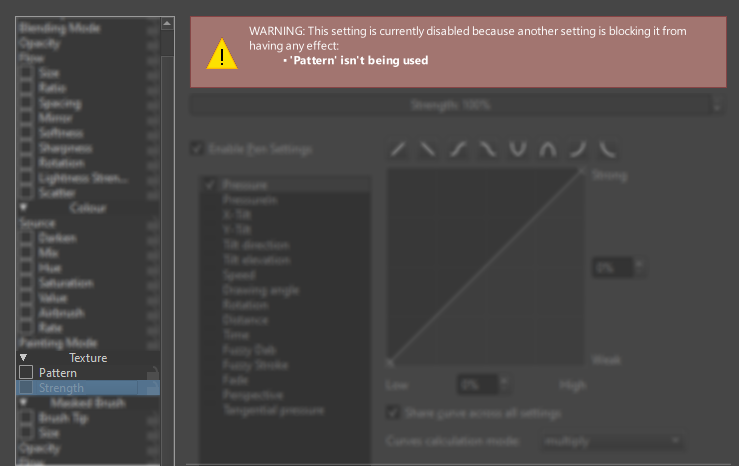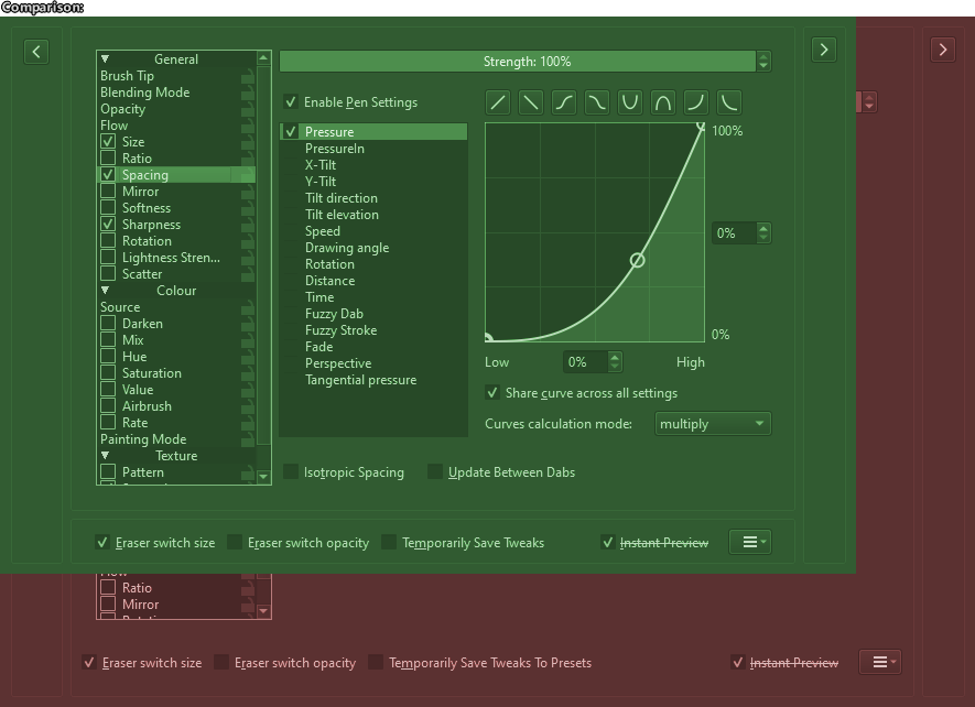 - The ends of the Strength slider-spinbox, the Y-axis spinbox for the pressure curve, and the Curves calculation mode dropdown menu don’t align along the right side.