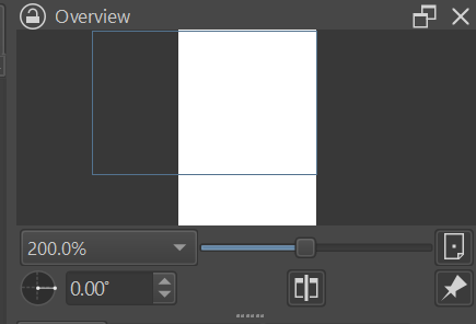 The overview docker is also not part of the default workspace and it’s also kinda hard to tell if it is active or not. I don’t understand why the button is not highlighted blueish like the other toggle buttons on the tool bar, but that’s an issue of its own. (I guess it’s okay you because you still see the image in its original view).