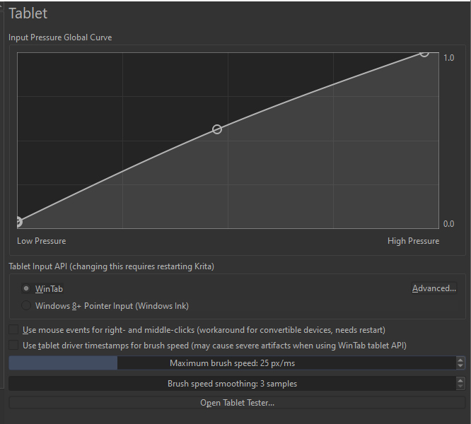 I have a Xp-Pen Deco 01 V2 tablet (tilt support, 8k pressure levels)