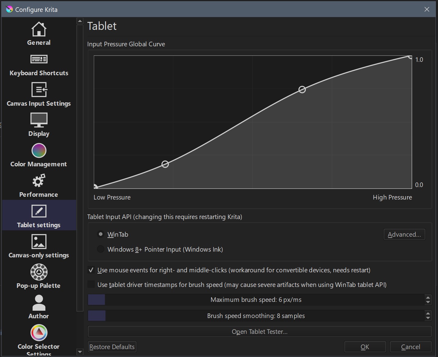 Second, i have and old beatup Bamboo Ctl-460. Settings pretty much similar to everyone here, in terms of brush speed and smoothing. But i did make changes on the fly, while testing…