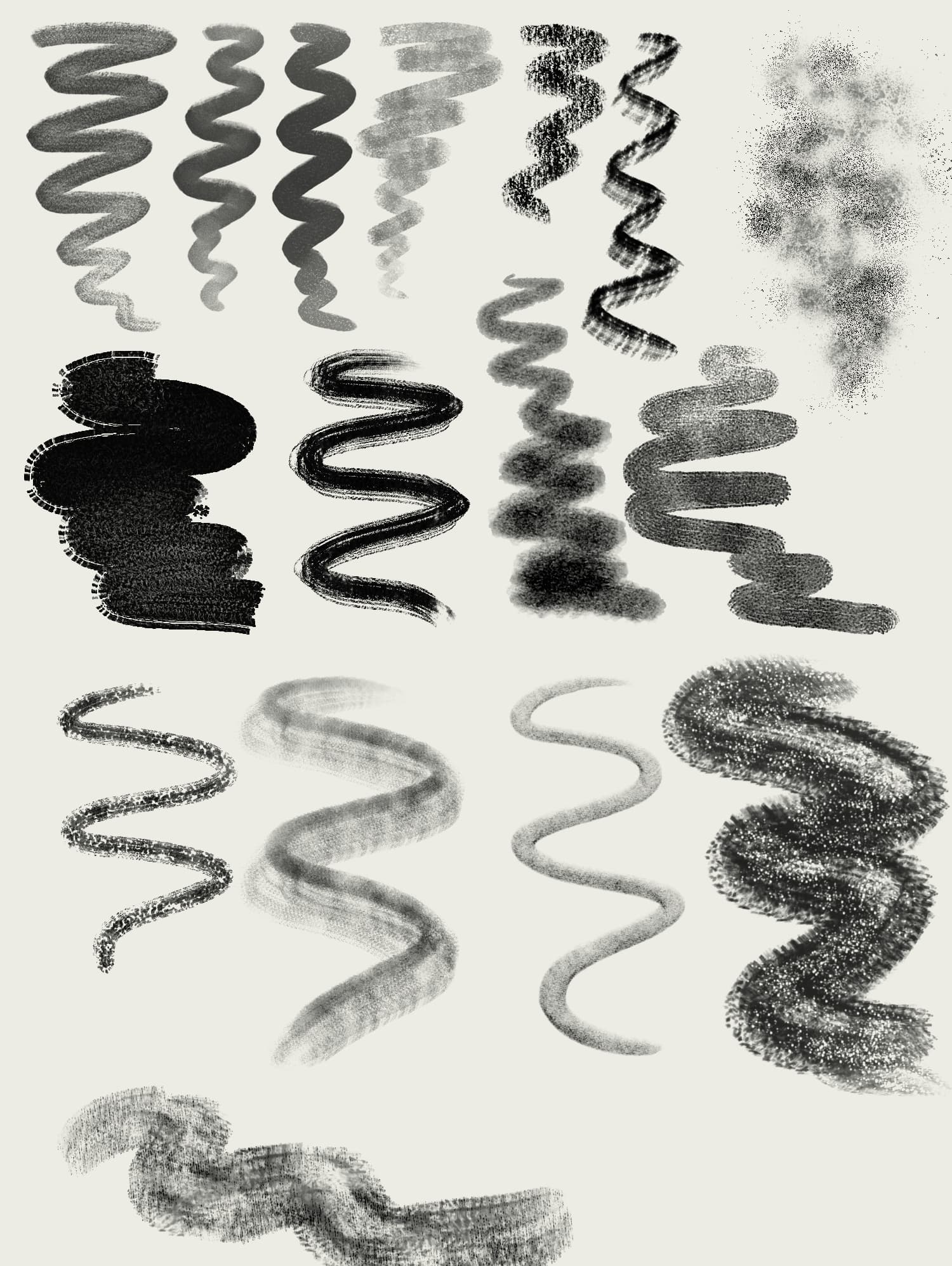 Rakes - Somewhat conflicted. They’re very good, but i rarely go to rake type brushes during work. They flow very well, have pretty textures, but seem to lack something, especially “dusty”.