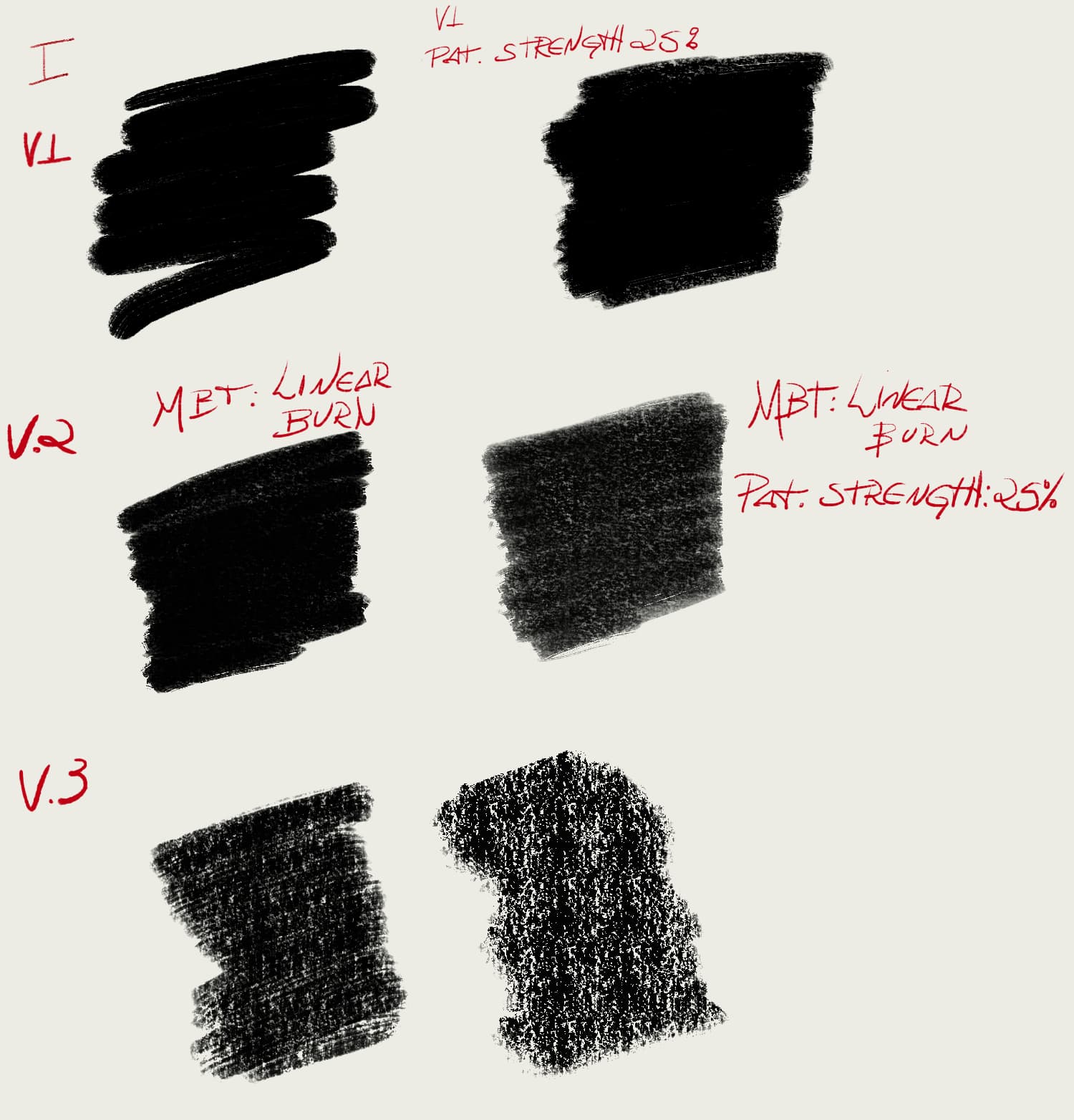 Roughs - Beautiful. Up there with “Pentel”. Great textures, great fillers. However, i also had @just_scp_lover problem: Had to adjust tablet parameters to work with, or lower the patterns “strength” to make them appear more. Another way was enabling “Sharpness” and lowering down. (Pic. II , III)