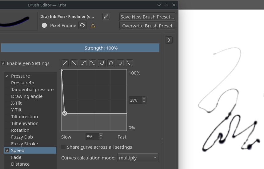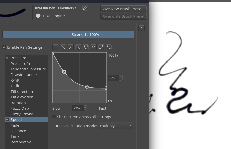 the speed was affecting the size a bit strange (i figured from the brush icons that it was not intended to be like that) so i changed the curve