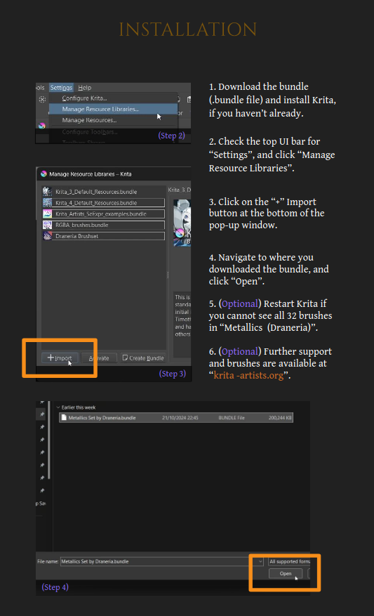 P.S Super new to Krita and not sure how to install brush bundles? Have a look at this or the link below: