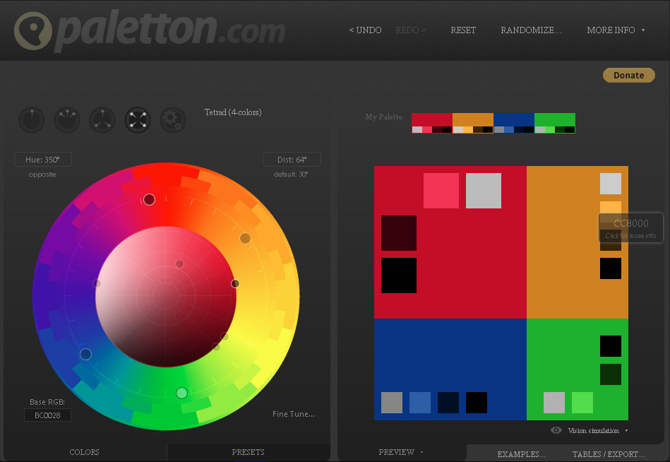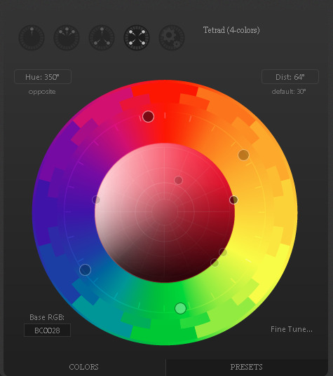 This is an color palette with color wheel that place colors on a background color to show which color is better to use on the background color.