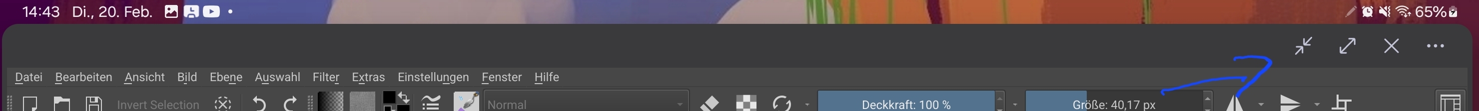 Yeah, it is a bit confusing. But on the One UI 6 (Samsung Tablets) theres a feature called the taskbar and I find it useful however, it takes up a non-trivial amount of vertical space when in landscape mode. Going fullscreen from View → Fullscreen Mode (Check box) hides this task bar and all other native Android UI elements, and fills the entire screen with the Krita interfaces.