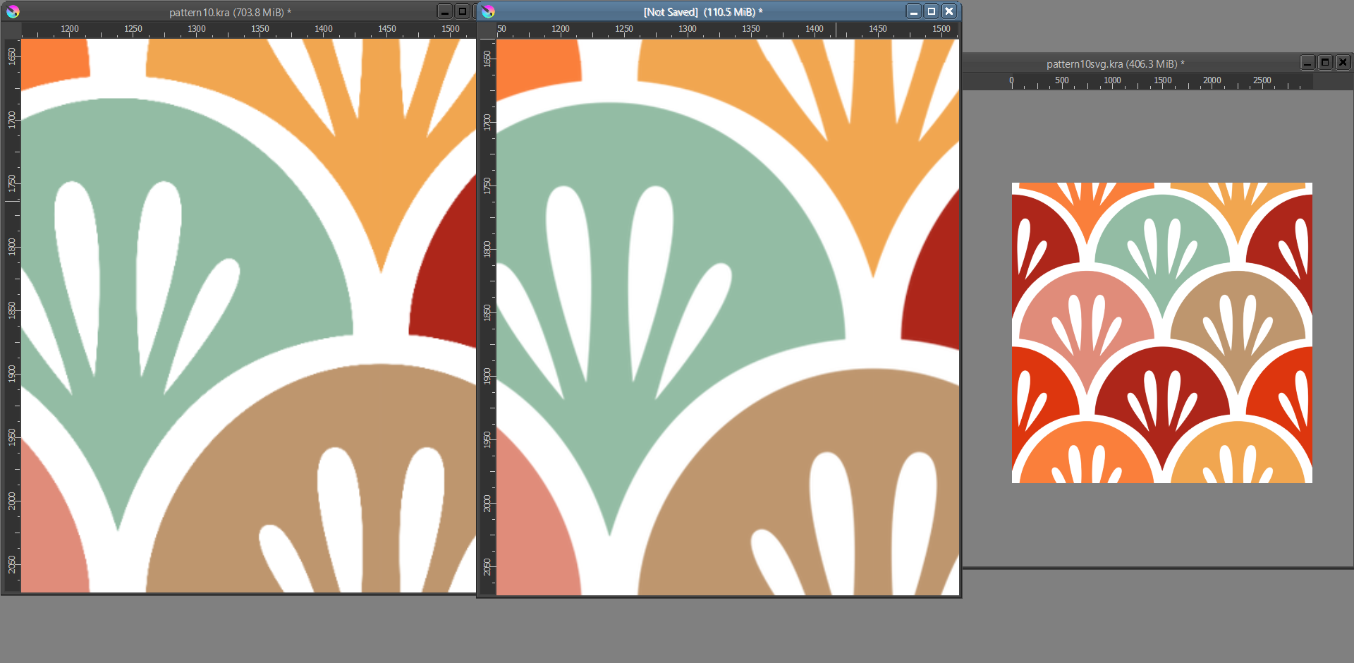 Cool! There’s a tutorial of mine where I make a pattern in Inkscape. In the process, I used Gimp as well, but it’s perfectly possible to use Krita instead of Gimp: