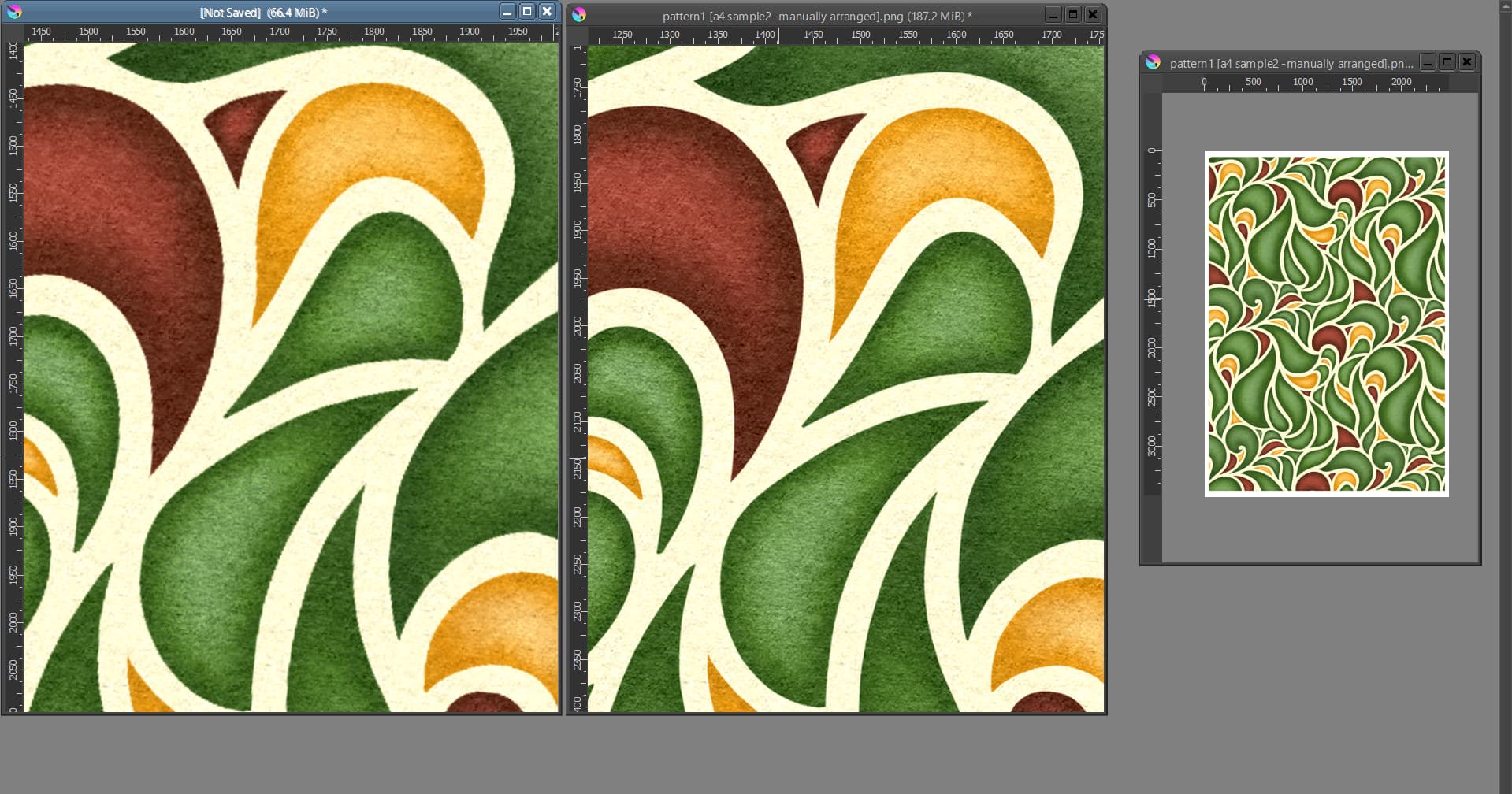 To make a comparison, I did another one by manually connecting multiple copies of the same image (saved as .png as well) to make a complete seamless pattern. Quality is much better than the other one.