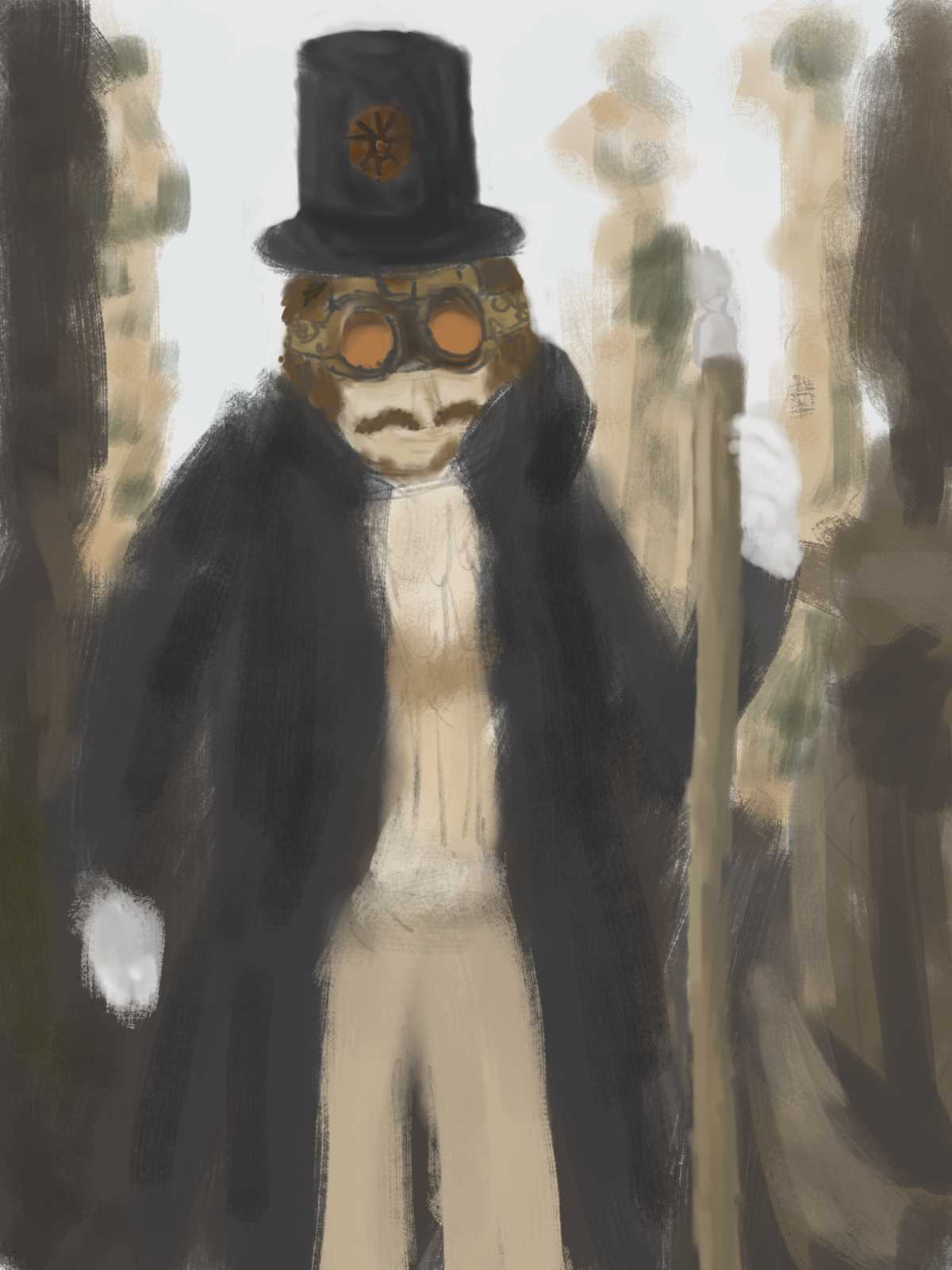 It’s a bit late, but here’s my rough sketch. I was going for some kind of magician, but it might have ended up with a bit of mad scientist or supervillain too.