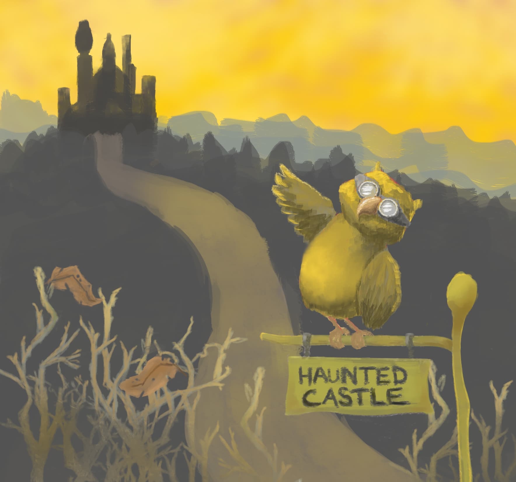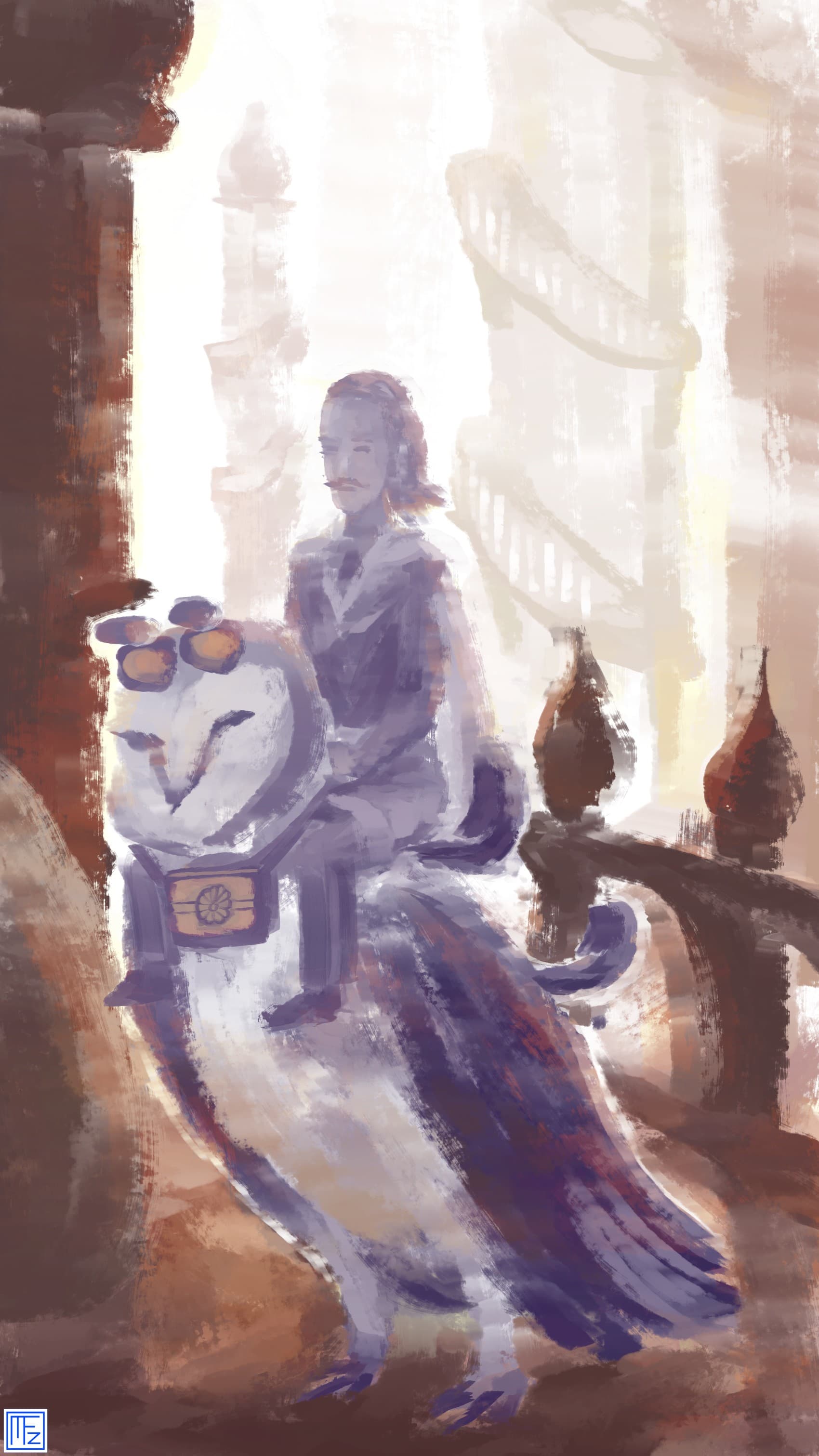 Really good. I can see that you used the lantern motif for the prop in the owl. I like a lot the texture and palette. By the way, are you doing everything in the same layer? the outline for the owl and the rider is done on porpuse to enhance the silhouette?