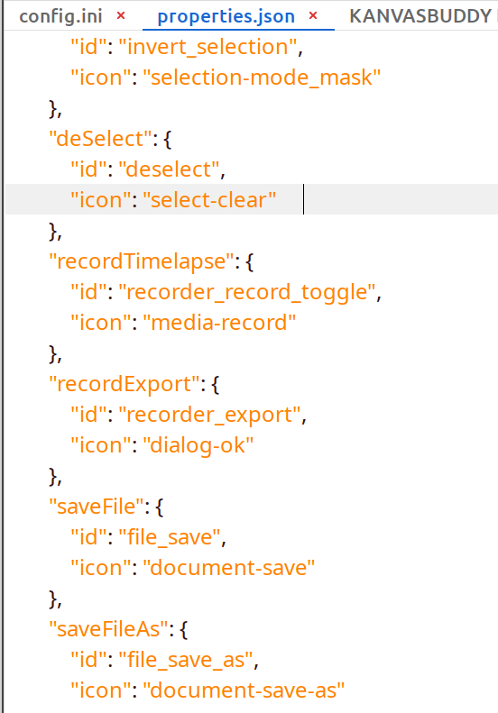 For reference if you want to add anything else, you can go to e.g. media-record icon … click on the media-record icon, then, to the right, you will see the icon ID to use. I think krita already has these things inbuilt, so the icon auto-activates.