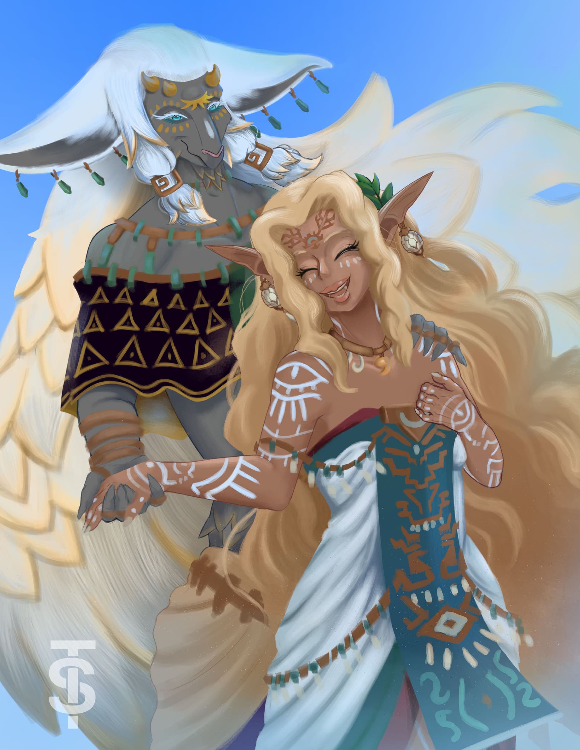 Light and Time - King Rauru and Queen Sonia enjoying a dance. Characters from Zelda Tears of the Kingdom.