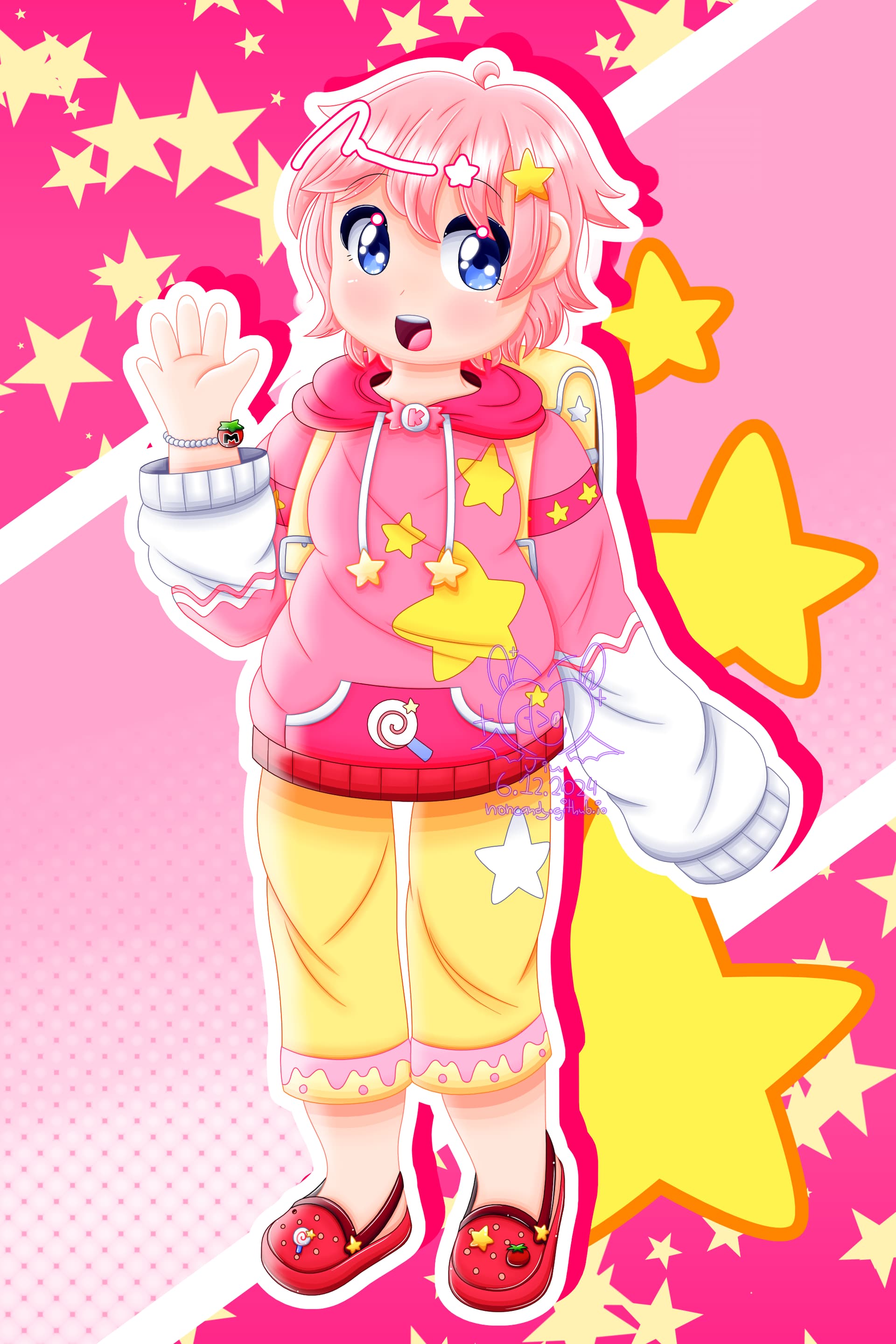 I designed my own Kirby gijinka (human anthropomorphism)! Look at this silly qwqqqq