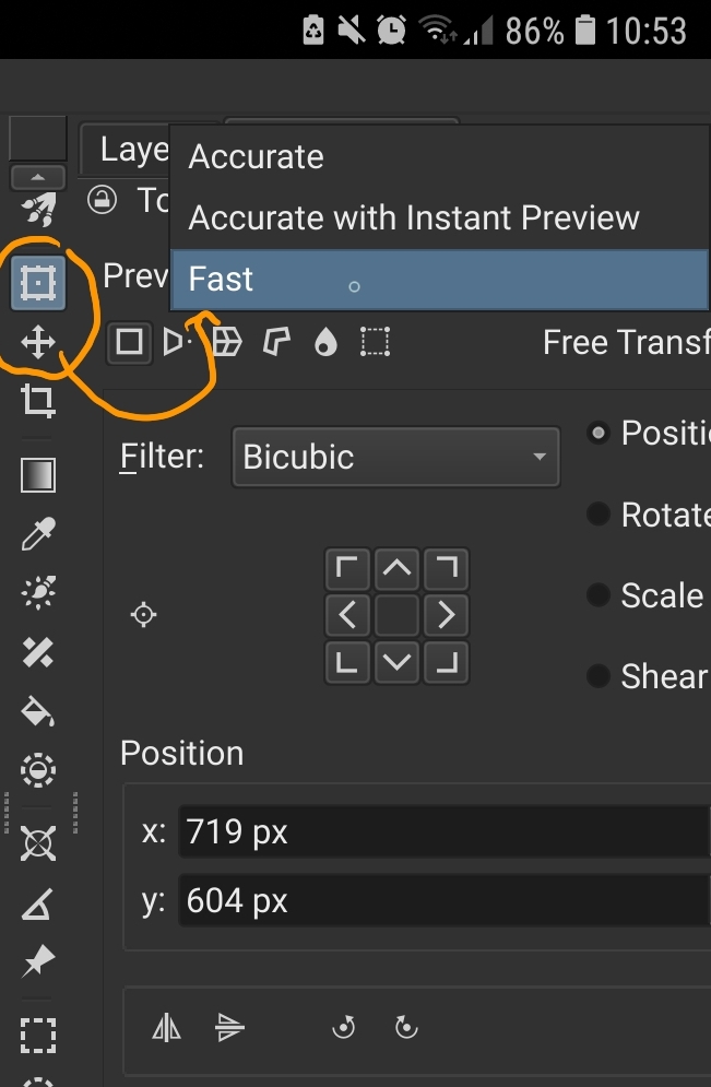 And the last one is bit like feature request. Is it possible to get Move tool a Fast option like Transform tool? The performance gap is too far on android. Move tool is just litteraly to move object, why is it slower than Transform tool that has more options in it…?