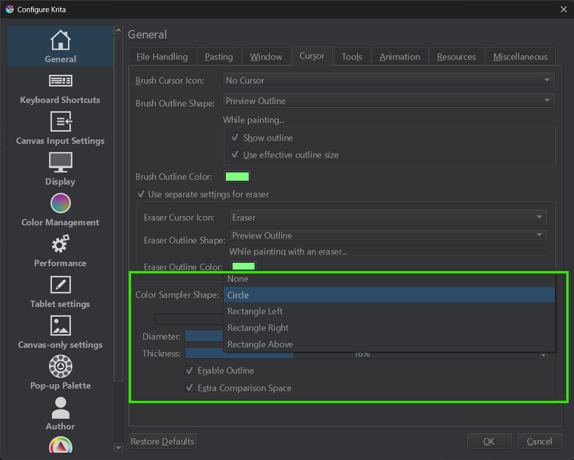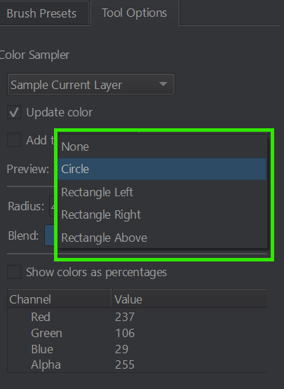 Some time ago I, like others before, made a post about my hand obscuring the on canvas color sampler indicator (relevant for right handed pen display users):