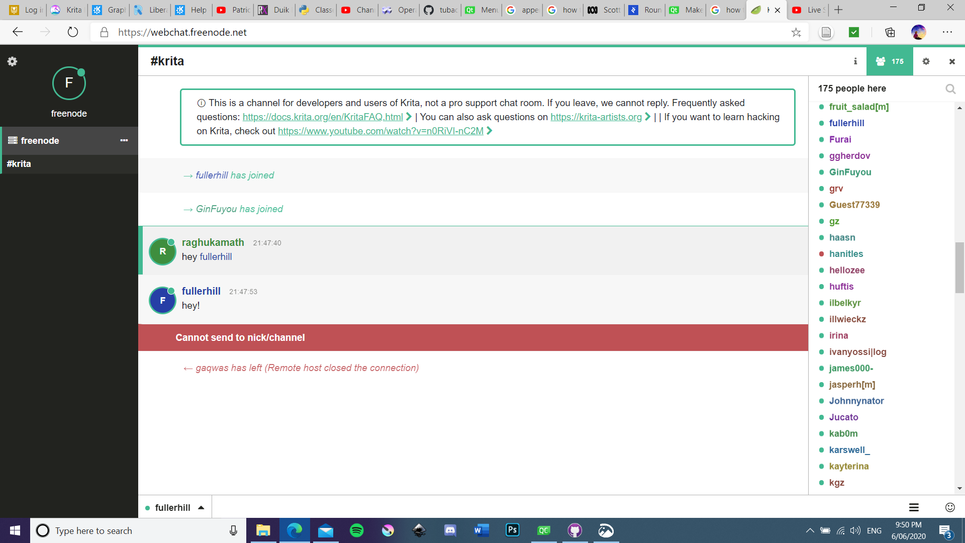 In case you donāt see any response from anyone, make sure you have a freenode account . Krita has restricted peopleās messages to those who are registered to reduce spam messages