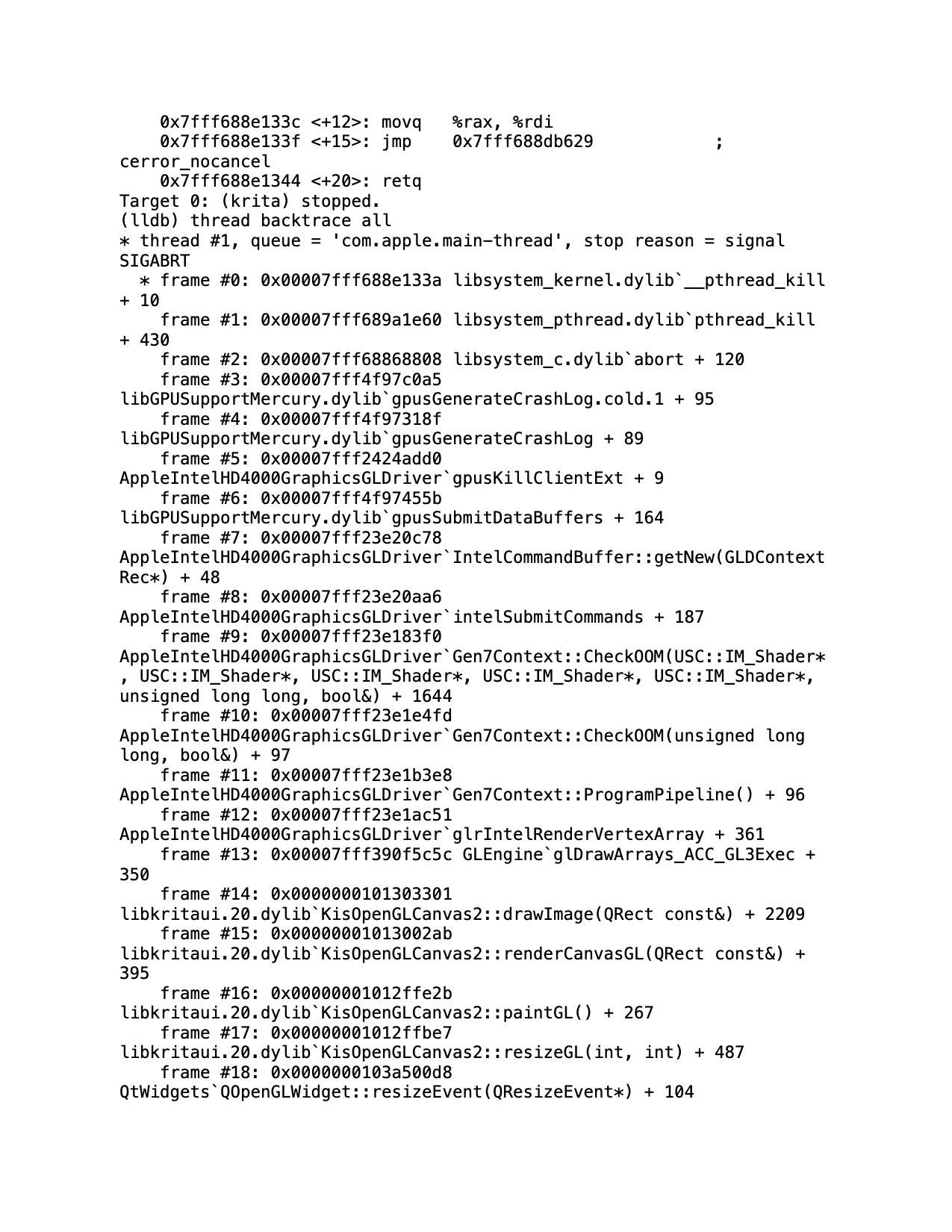I did the backtrace, it said “stop reason = signal SIGABRT”