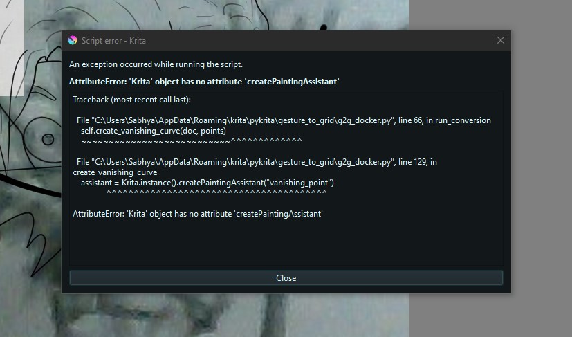 While using Krita, I decided to make this plugin. which will convert hand-drawn lines into the perspective grid. and Krita keeps showing me this error