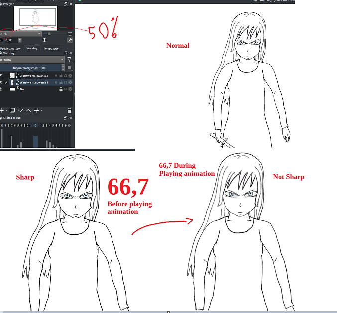 Yes they do like they should, even when i will stop displaying of animation even on the 66,7 view, and just click random frame (without playing the whole thing) - it’s maintaing sharpness, as i said, it’s all sharp on every view, but ONLY loosing sharpness when displayes on just 66,7%.